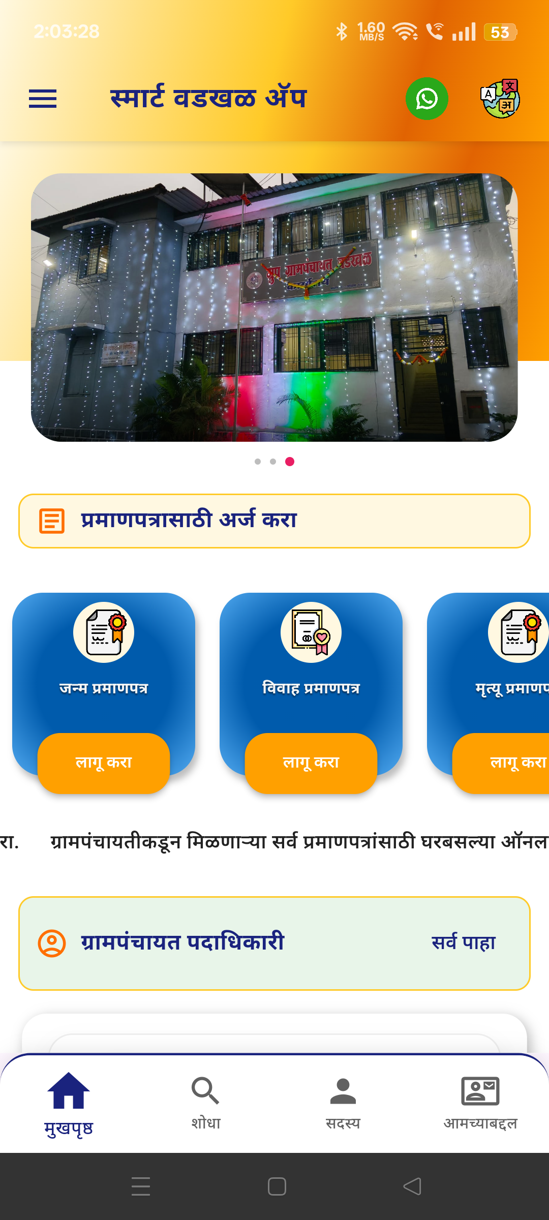 Smart Wadkhal app provides digital gram panchayat services in one place.